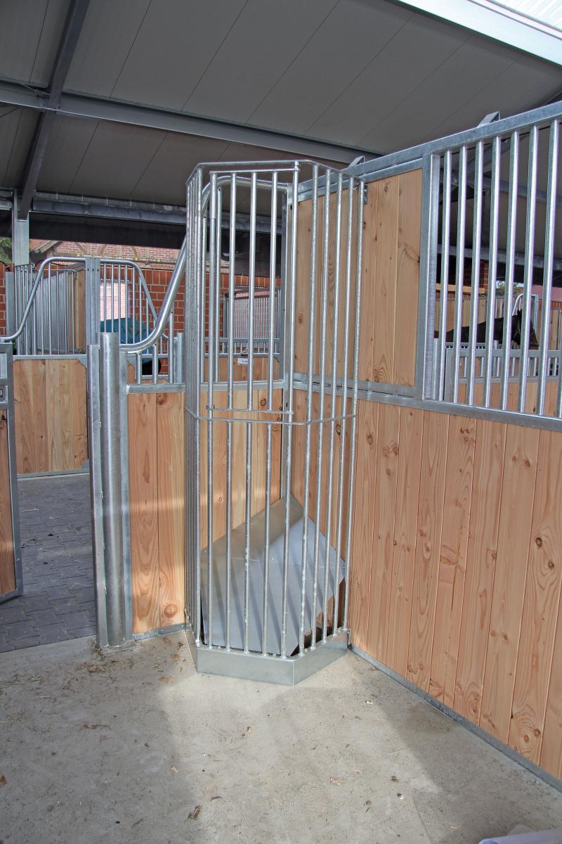 Met een roosterafstand van circa 6 cm biedt deze hooiruif een veilige en gecontroleerde voeropname. De constructie is volledig uitgevoerd in vuurverzinkt staal, wat zorgt voor een lange levensduur en uitstekende bescherming tegen roest en intensief gebruik.
