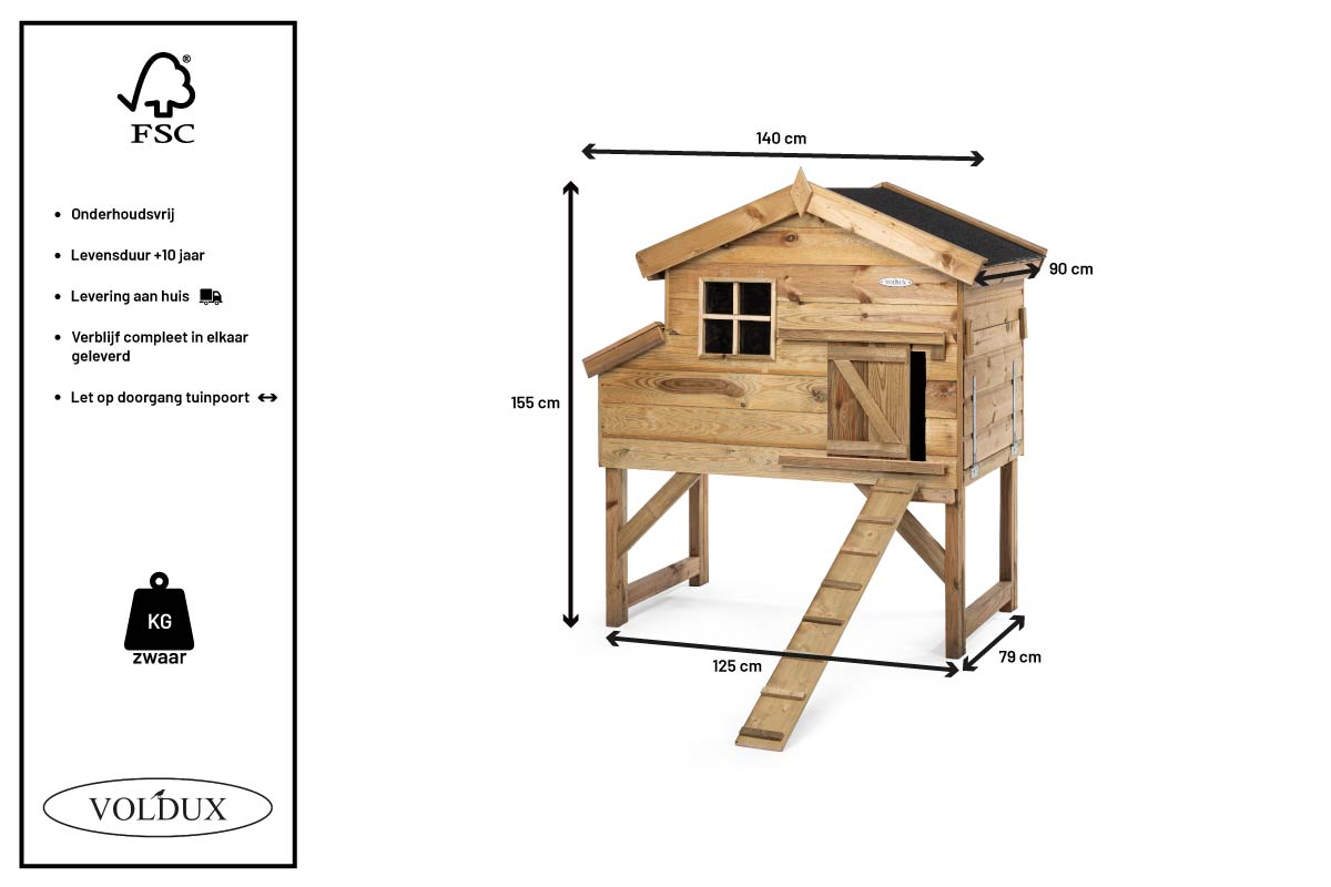 Als u op zoek bent naar een kippenhok met een levensduur van 10 tot 15 jaar dan is kippenhok Jasper iets voor u! Dit verblijf wordt geproduceerd door gespecialiseerde vakmannen die zorgen voor een perfect resultaat. Het verblijf wordt volledig gemaakt van onderhoudsvrije materialen. Dit maakt het hok onderhoudsvrij en zeer geschikt voor buiten. Doormiddel van een deur is het nachthok goed te bereiken. Het nachthok beschikt over een legnest waarvan het dak is open te klappen en in het nachthok vindt u ook een zitstok voor de kippen. Kippenhok Jasper is een mooi nachthok voor in een kippenren. Dit prachtige verblijf is een aanwinst voor de kippen en uw tuin!